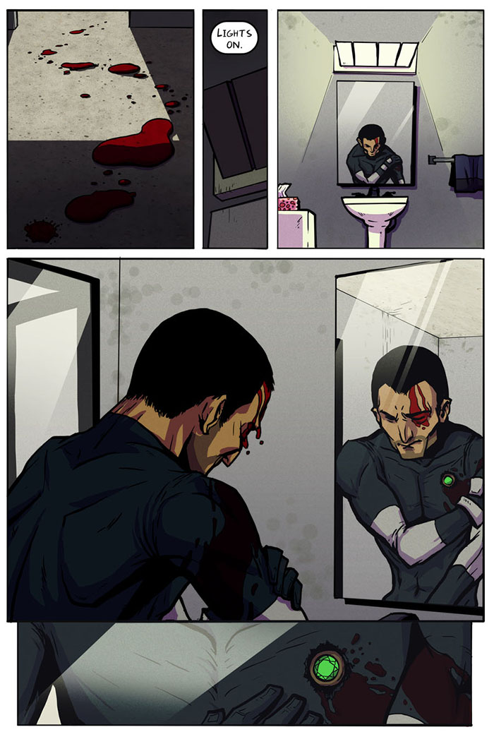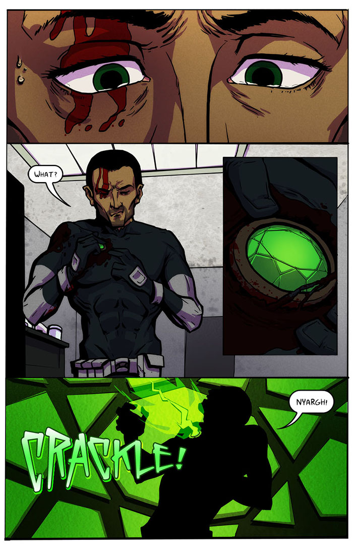 I have a fun cyberpunk comic pitch I had shopped around for a while that never got picked up. However, the concept has evolved a bit quite a lot since then, including an entirely new title. But here you go. This was the initial pitch comic that I sent off to a few publishers.
